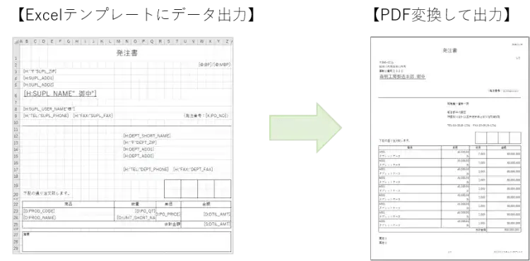 GRANDIT内のデータから、事前登録されているExcelテンプレートを用いて帳票を簡易作成することができます。