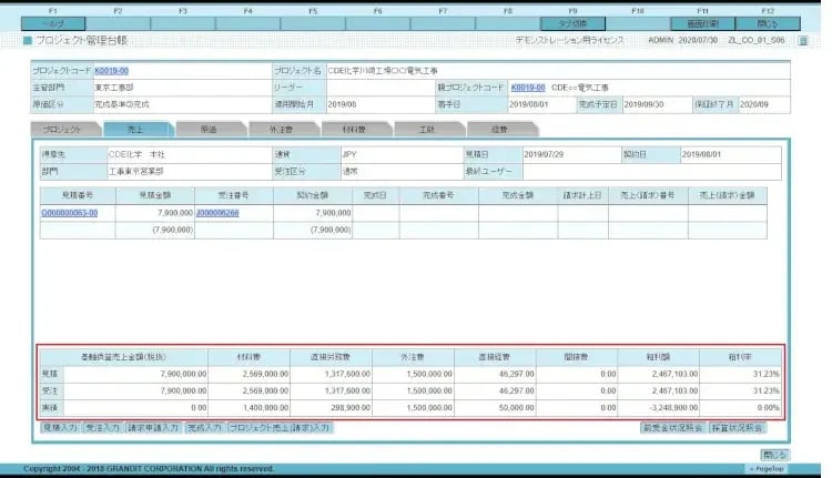 - 上記に伴うGRANDITとしての案件(プロジェクト)工事台帳の表現方法