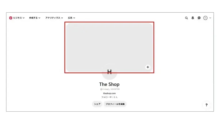 続いて、カバー画像(下記画像赤枠)を設定します。