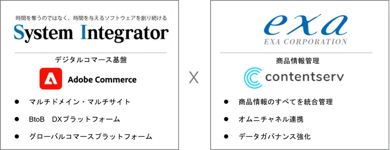 株式会社システムインテグレータ(本社:さいたま市中央区、代表取締役社長CEO:引屋敷 智、東京証券取引所スタンダード市場:証券コード3286、以下「当社」)は、当社がソリューションパートナー契約を締結しているデジタルコマース基盤「Adobe Commerce」と株式会社エクサ(本社:神奈川県横浜市西区、代表取締役 社長執行役員:千田 朋介、以下「エクサ社」)が提供する商品情報管理 PIM/DAM統合ソリューション「Contentserv」を用いて、効果的な商品情報の活用が可能なEC構築ソリューションの提供を2022年9月7日より開始いたします。