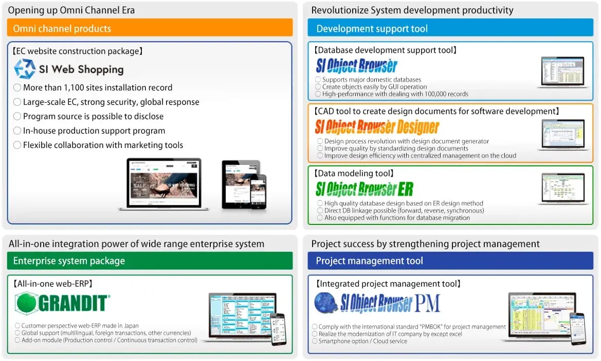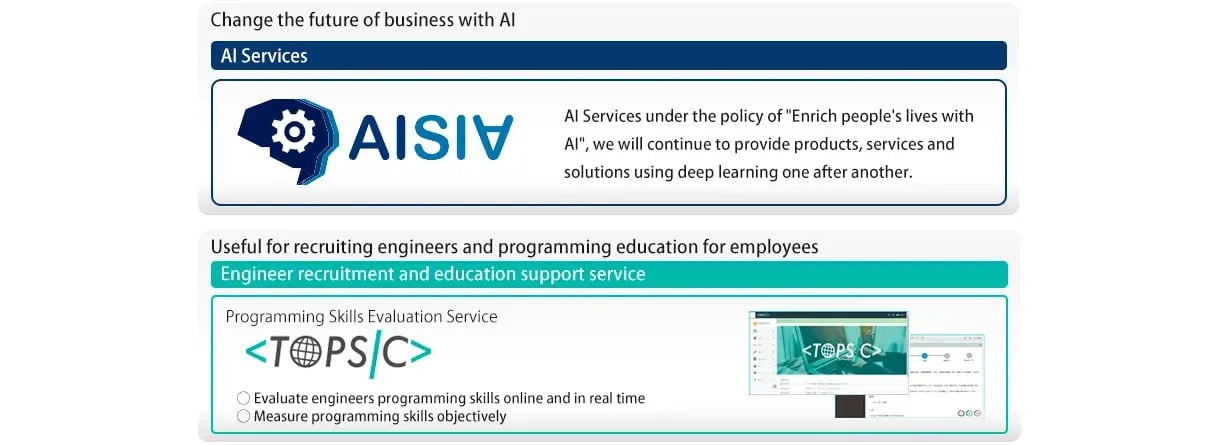 Technology development capability:Continuously researching the latest IT technology, converting to package software and services, and contributing to the benefit of customers.