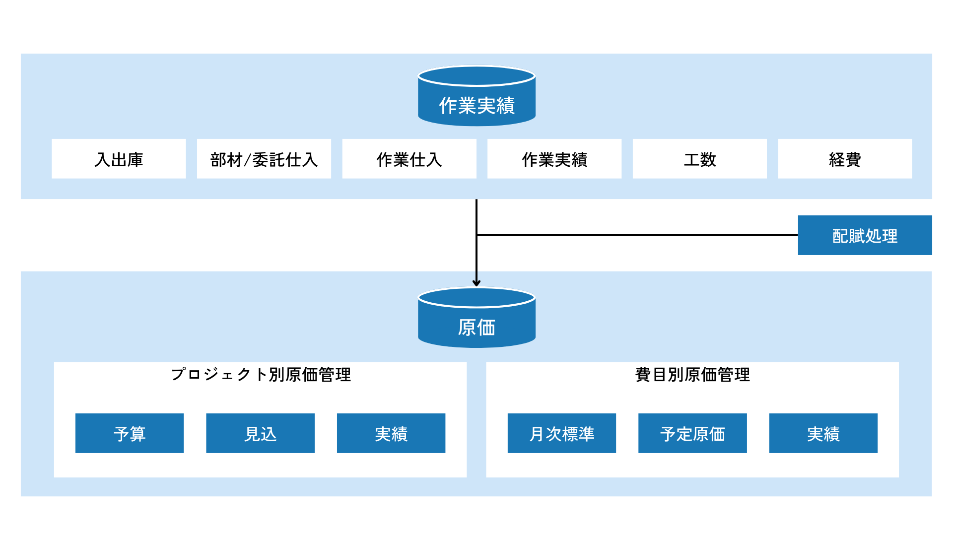 製造実績データをもとに原価情報へ自動連携し、品目・製番・案件単位で原価を正確に把握できます。