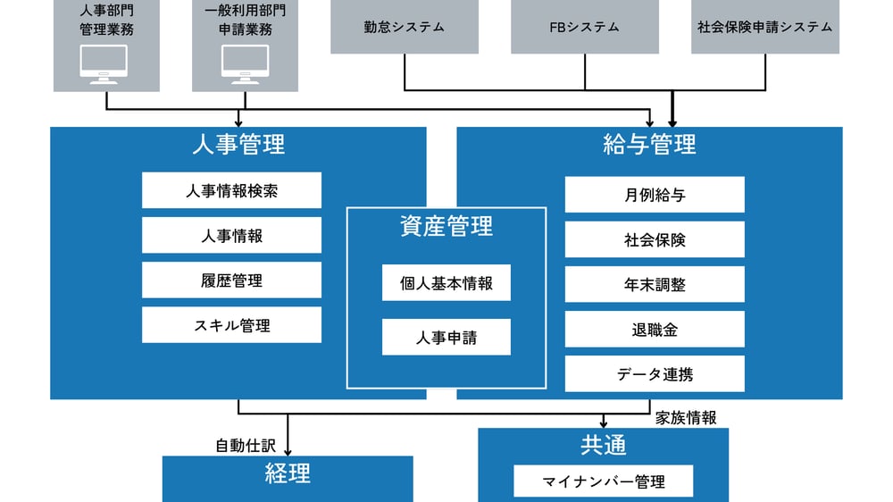 ワークフローを使用した人事申請から自動更新される人事情報は全て履歴管理され、多彩な検索機能で目的にあった情報の抽出が可能です。給与体系ごとにパラメータ形式の給与計算式、支給・控除テーブル設定が可能で、社会保険や所得税の改正にも完全対応します。