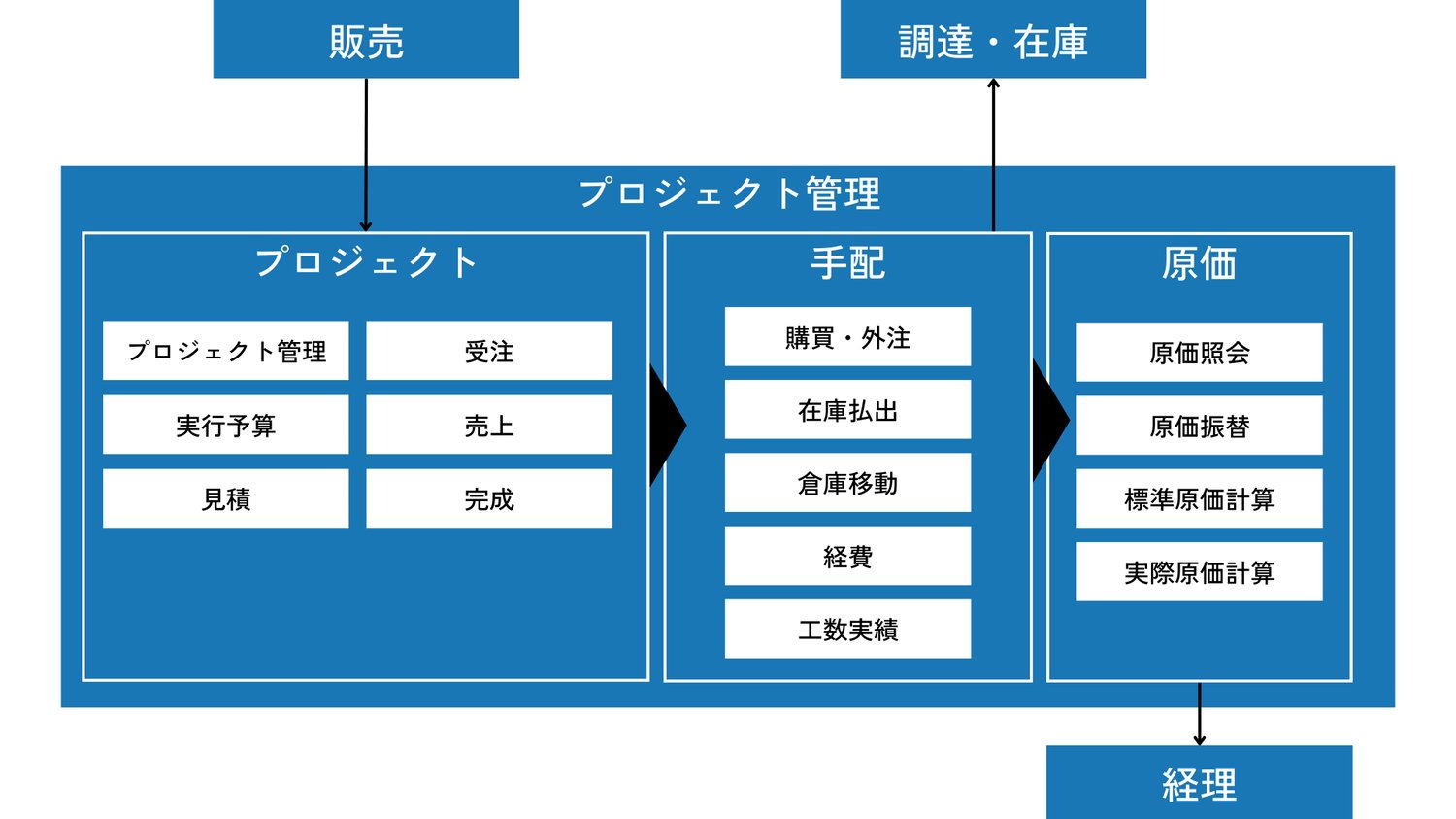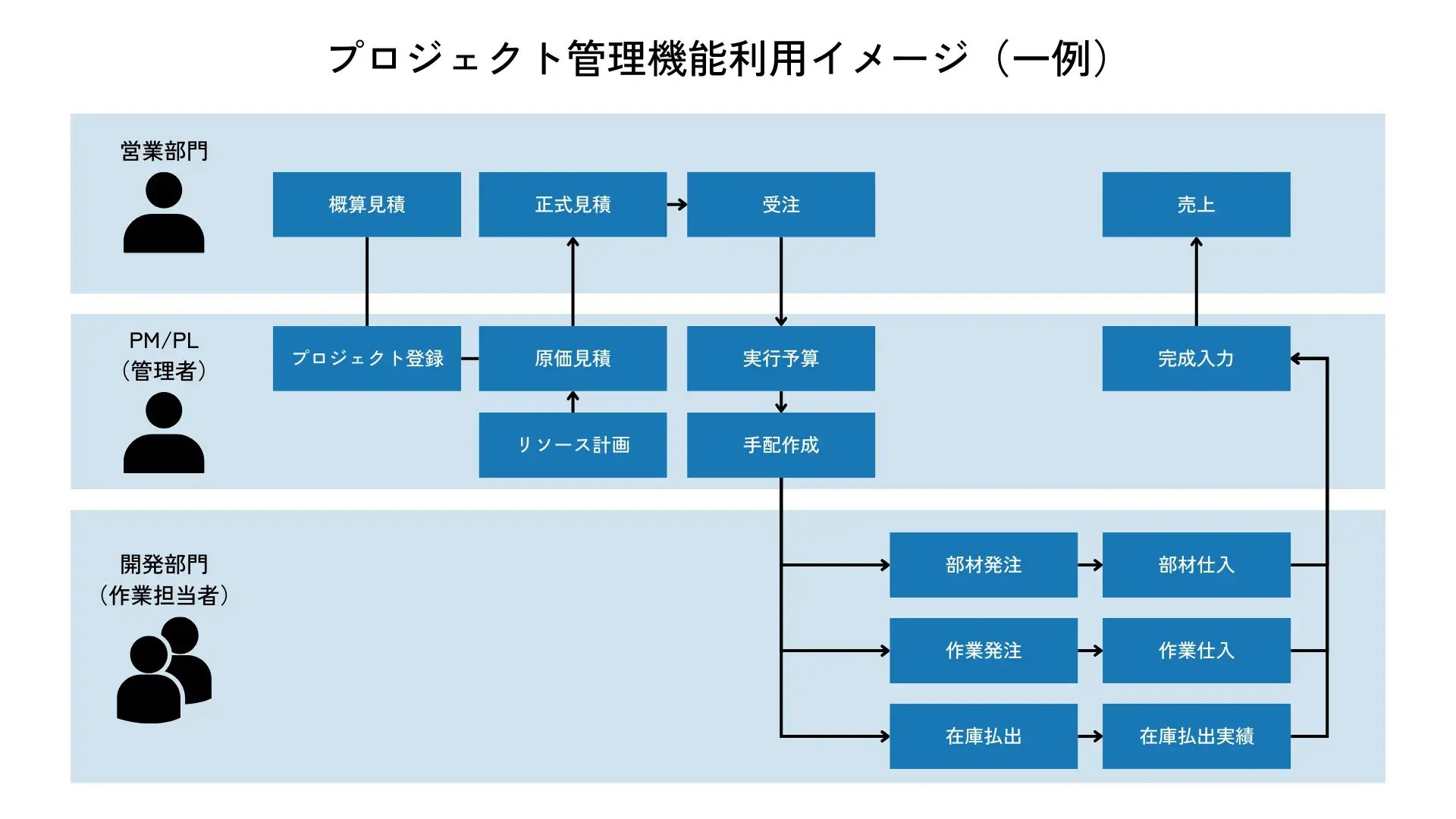 システム開発、ITインフラ構築、アプリケーション開発などを手掛けるIT企業向けに、受注管理、プロジェクト計画・進捗管理、作業実績・リソース管理、成果物納品管理など、ITプロジェクトのライフサイクルを一元管理。案件番号(プロジェクト番号)をキーに、契約・コスト・収益を正確に可視化し、「計画以上」のプロジェクト成果の実現を支援します。