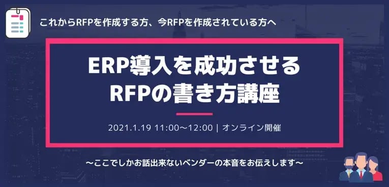 | タイトル | ERP導入を成功させる RFP書き方講座 ~事例から学ぶ良いRFPと悪いRFP~ |