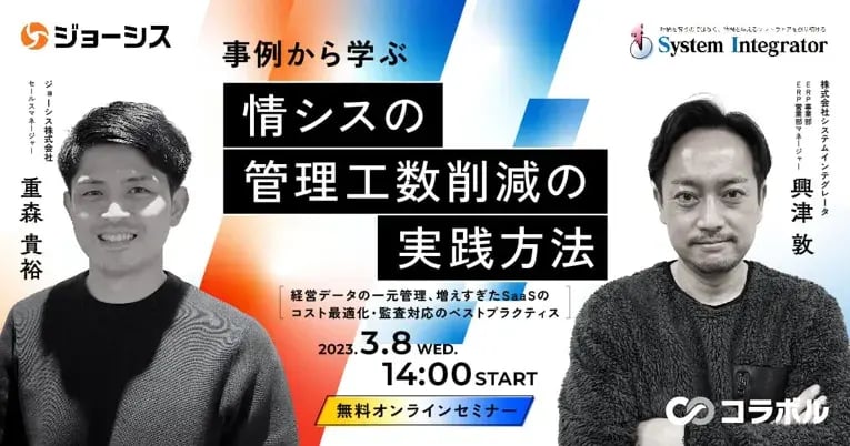 といった課題に直面している企業様も多くいらっしゃいます。そんな方々に向けて、本ウェビナーでは「あらゆるデータと業務をシームレスに統合管理する方法」や、「増えていくSaaSの効率的なコスト最適化・監査対応方法」などについて、他社事例も交えて解説いたします。