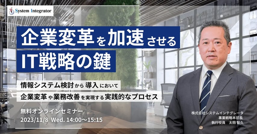 当セミナーでは、"基幹システムやデジタル活用を俯瞰し、業務や企業全体の最適化、高度化を目指す構想や計画”に焦点を当て、企業変革の成功に向けた鍵を提供します。