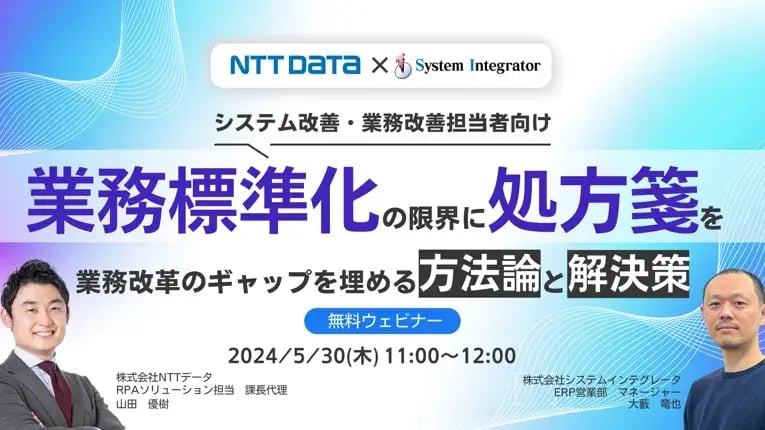 今回のセミナーでは、これらの課題にどのように対処すべきかを考察し、ERPでどれくらい業務を標準化すべきか、また生じた業務のギャップを埋める具体的な解決策として、RPAによる業務の自動化やリソースの最適化の実践例を紹介します。