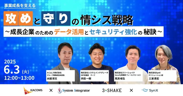 日時:2025年6月3日(火) 12:00-13:00開催方法:オンライン主催:株式会社SynX共催:株式会社システムインテグレータ、株式会社スリーシェイク、カコムス株式会社