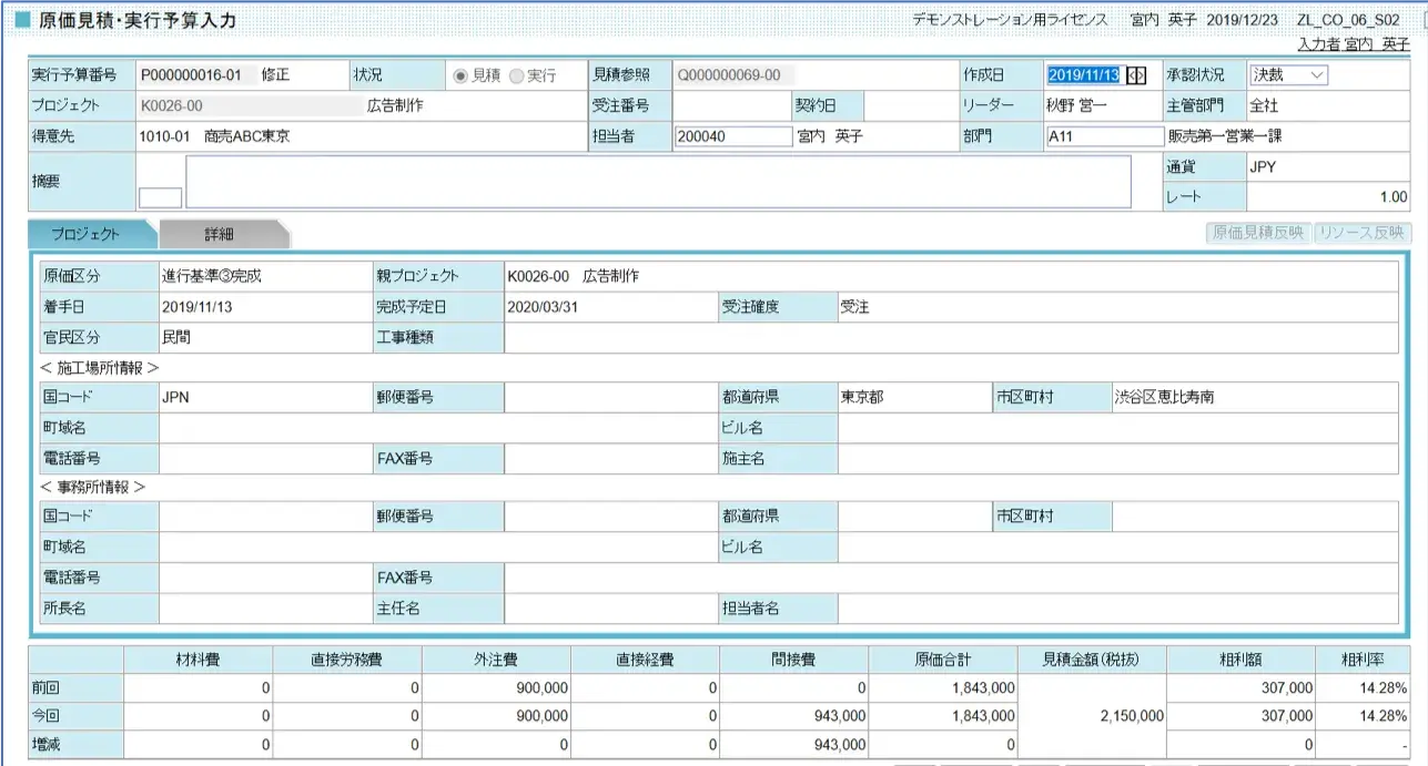 工事管理アドオンモジュール(プロジェクト型ビジネス業向け)