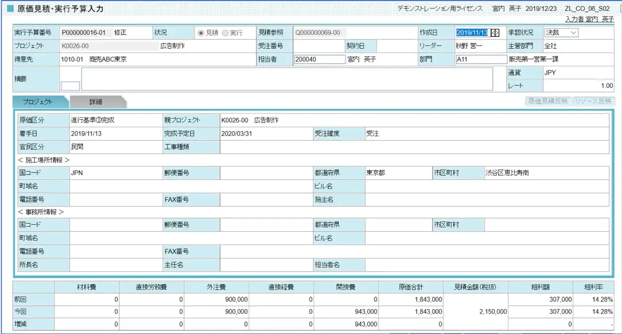 一般的なERPでは実現することが困難な、プロジェクトごとの損益予測の精度向上と、リアルタイムなプロジェクト全体の収支管理を実現します。