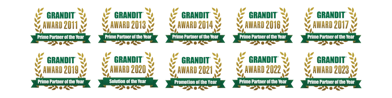 GRANDIT AWARDはGRANDITコンソーシアムメンバーの中で、大きな功績をあげたパートナーに授与される称号です。当社はGRANDIT AWARD創設以来、数多く受賞してまいりました。