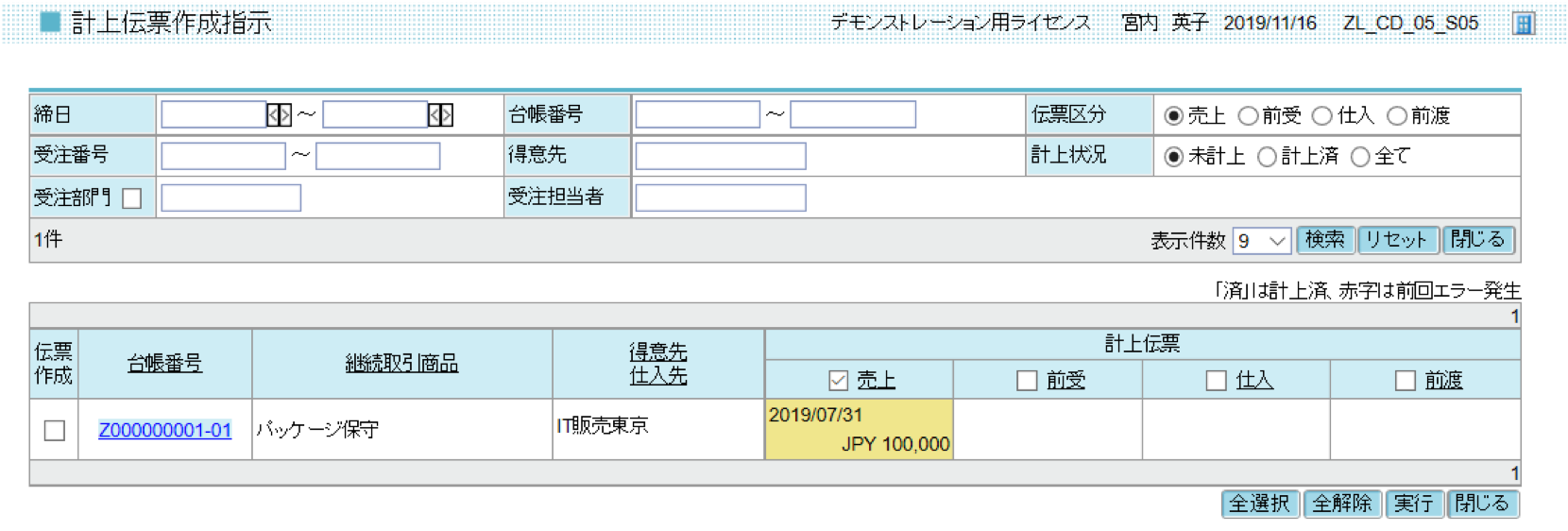 ・売上・仕入・前受・支払の計上伝票を作成します。作成方法は「自動」「手動」の選択が可能です。