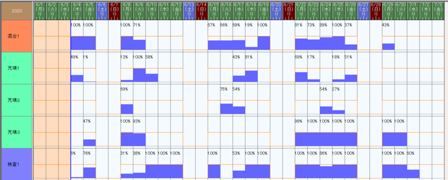 他拠点の需要情報のほか、内製、外製、負荷状況などを確認しながら計画立案ができます。また、販売計画や得意先のフォーキャスト情報を基にPSI計画を立案することもできるため、過剰在庫や不足気味の在庫を事前にキャッチします。