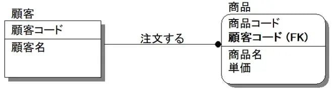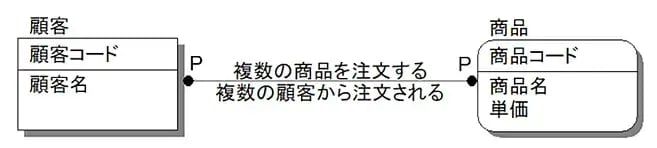 「顧客」や「商品」がエンティティ、「注文する」がリレーションシップとなります。どのような大規模システムであっても、ER図ではエンティティとリレーションシップの組み合わせでシンプルにシステムが表現できることが特長となっています。