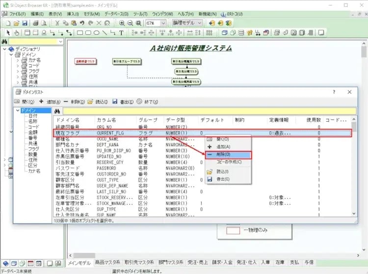 こんなものは消してしまいましょう。ドメインリストから右クリックして削除します。