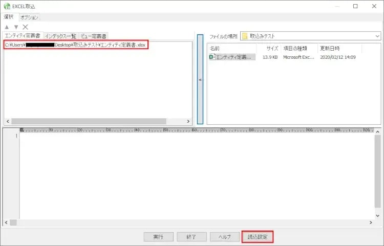 これでExcelからエンティティを取り込むことができました。気づかれた方もいたかもしれませんが、取込画面ではタブを切り替えることによりエンティティ定義書の他にインデックス一覧、ビュー定義書も指定できます。