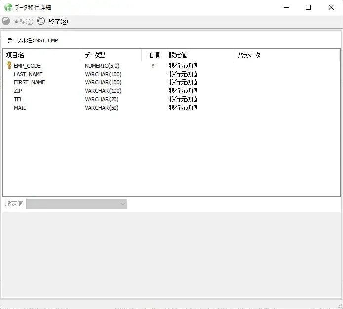 | 移行元の値 | 移行元のテーブルからデータを取得し、そのまま移行先にセットする |