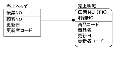 顧客マスタの主キーである顧客NOは、売上ヘッダのエンティティの線から下にFKとして存在していることが見て取れます。
