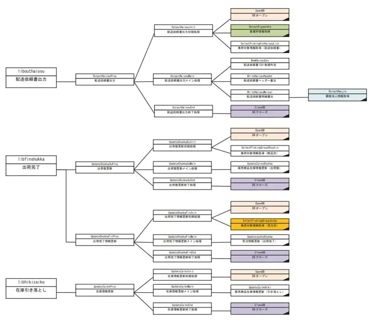 また、バッチ処理ではIPO(INPUT-PROCESS-OUTPUT)で記述することが多いです。以下は、IPOで記載された設計書の例です。状況に応じて、わかりやすい図法で記載しましょう。