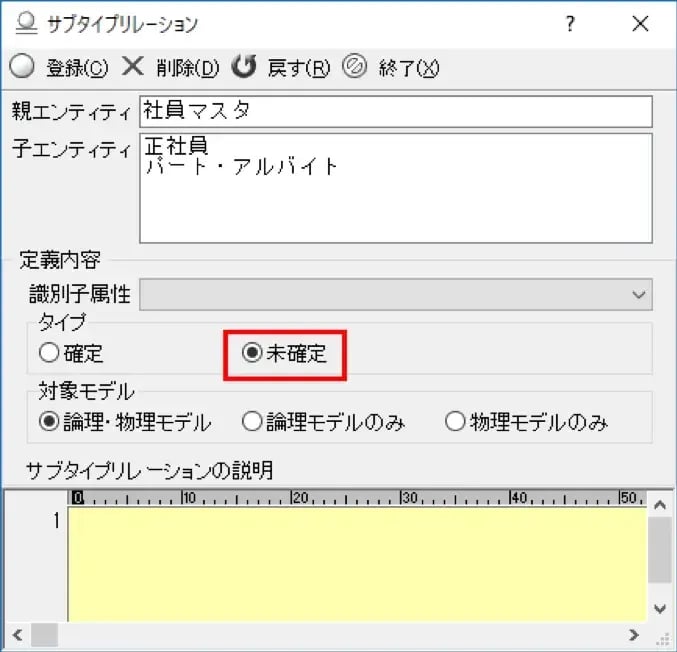 サブタイプリレーションシップのモデリング方法 「確定」「未確定」