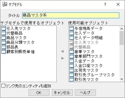 サブモデル名を入力するダイアログが表示されますので、サブモデル名を入力します。今回は「商品マスタ系」といれてみました。その後、「OK」ボタンをクリックします。