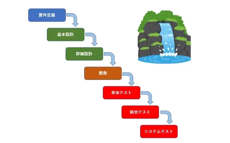 V字モデルはウォーターフォールから進化したモデルであり、開発の流れは同じです。ウォーターフォールで開発を進める上で、テスト工程を効率よく行い品質を高めるため、テストではV字モデルのやり方が採用されます。