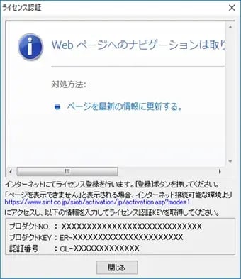 ライセンス認証KEYが表示されます。[閉じる]ボタンをクリックします。