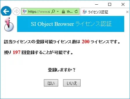 ライセンスの登録状況が表示されます。[はい]ボタンをクリックします。