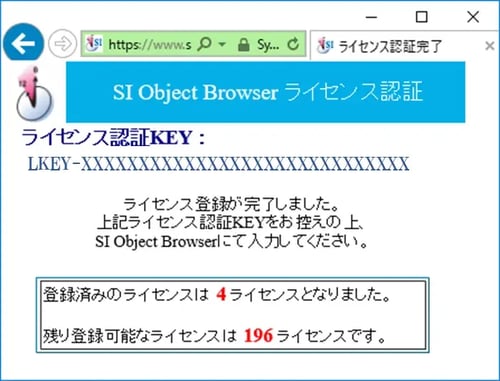 ライセンス認証KEYが表示されます。ライセンス認証KEYを控えてください。