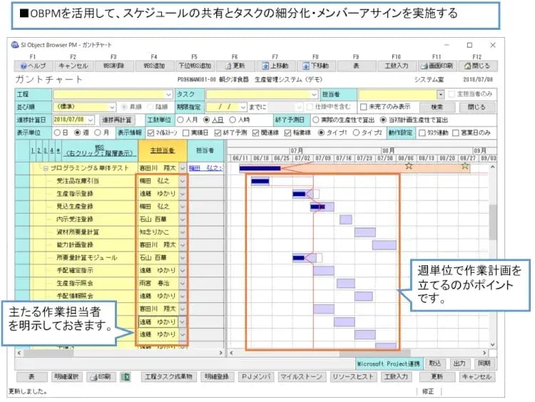 OBPMのガントチャートを上手く活用することで、プロジェクトと個人の進捗状況・期限を明確にし、プロジェクトを円滑に進められます。