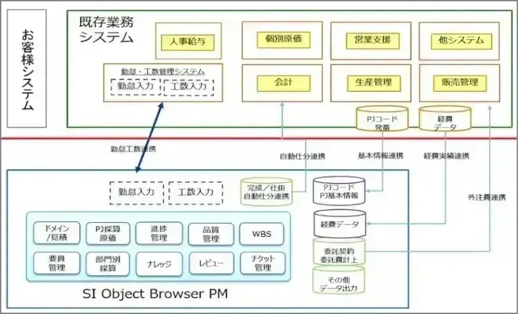 企業には、プロジェクト管理に関係する様々な業務システムがあります。例えば、勤務実績は勤怠システム、旅費や出張費はワークフローや経費管理システム、原価管理は生産管理システムと、プロジェクト管理と連携する情報が外にあるケースが多いです。