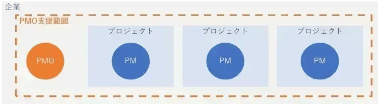 このPMOは、主に大規模プロジェクト内のサブプロジェクトのマネジメントをチームで担当することで、トップの統括PMを支える立ち位置となります。