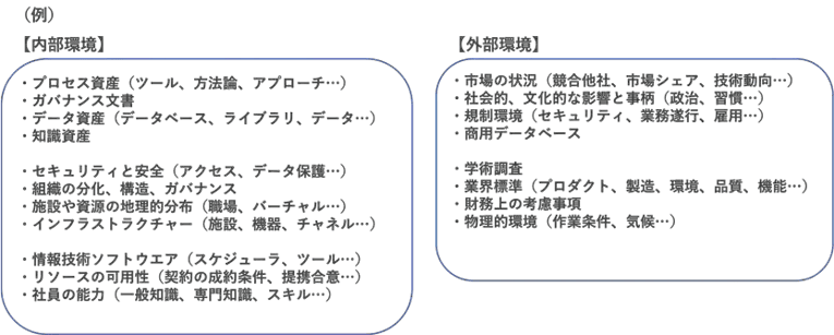 視野をプロジェクトからポートフォリオマネジメントにまで広げると、関連する要素も大きく広がります。従来は10の知識エリアを対象にすれば事足りたことが、上記のような価値を考えるのにそれだけでは不十分です。そこでPMBOK7では、組織や職務、内部環境、外部環境など、さまざまな要素を考えなければならない対象として掲げています。
