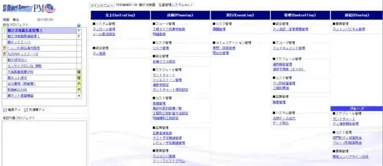 <プロジェクト管理ツール OBPMのメニュー画面>