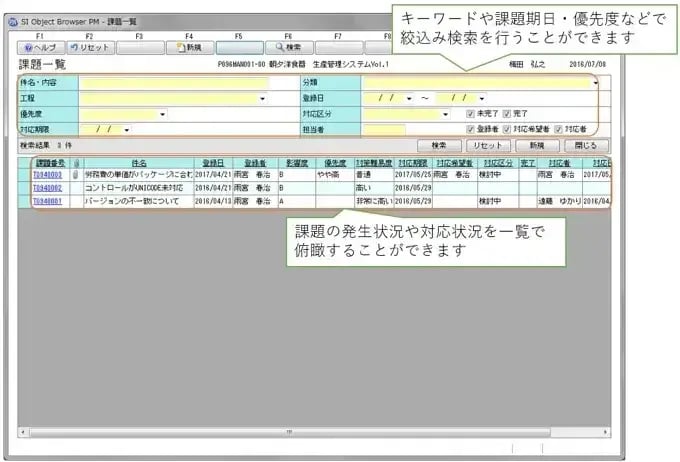 OBPMは、プロジェクト管理機能において「課題管理」があります。