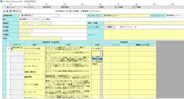 プロジェクトの工程の各マイルストーンに達すれば、この評価項目に沿ってレビューを行っていきます。