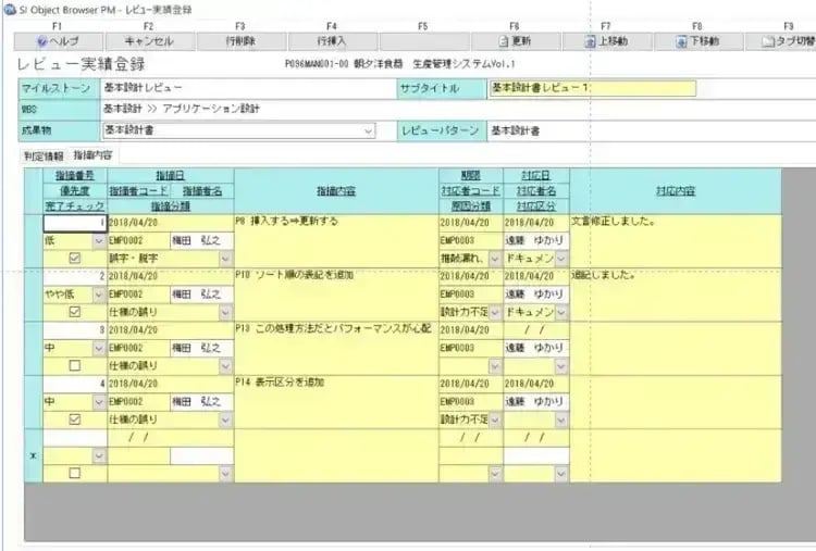 また優先度を登録できることも特徴です。レビュー者がレビューの結果、早急に対応した方が良いと判断した場合は、優先度のフラグを使うことで、至急の対応を行うことが可能です。レビューの結果を確認したプロジェクトメンバーは、OBPMにレビュー者が登録した情報を確認し、修正作業を実施します。