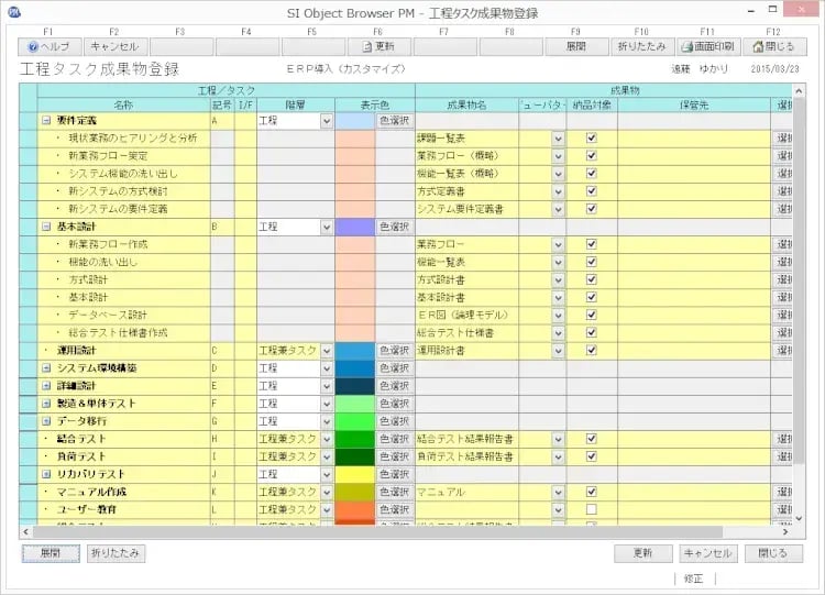 画面1:作業スコープ(工程タスク成果物登録)