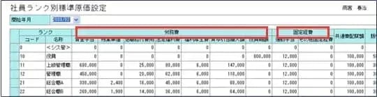 OBPMでは、社員ランク毎に標準原価を設定する機能があり、各ランク別に労務費、固定経費、共通費配賦額、販売管理その他費用の登録が可能です。