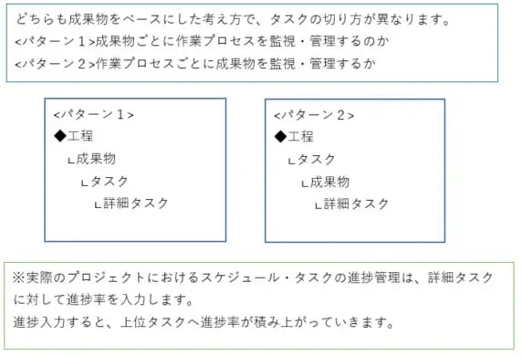 先ほどのパターン1を使うのかパターン2を使うのかでは、進捗管理の指標の方法も変わってくる可能性があります。