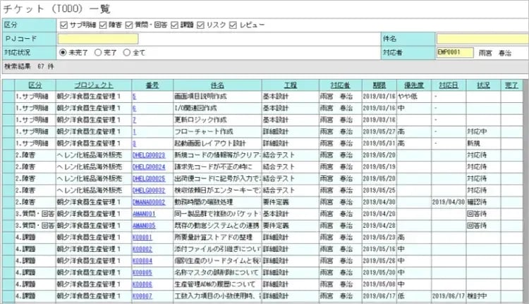 プロジェクトには作業タスクやプログラム別開発モジュール進捗を見たり、バグが発生すれば障害管理に登録し、顧客との課題管理やQA内容を共有し、成果物レビューの指摘対応や、リスク項目の対応などたくさんの作業内容があります。