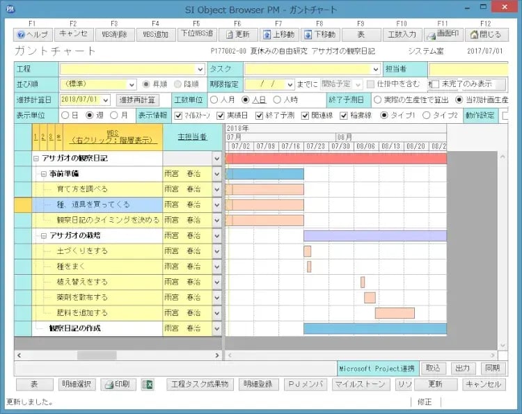 プロジェクト管理ツール:Object Browser PMとスケジュール