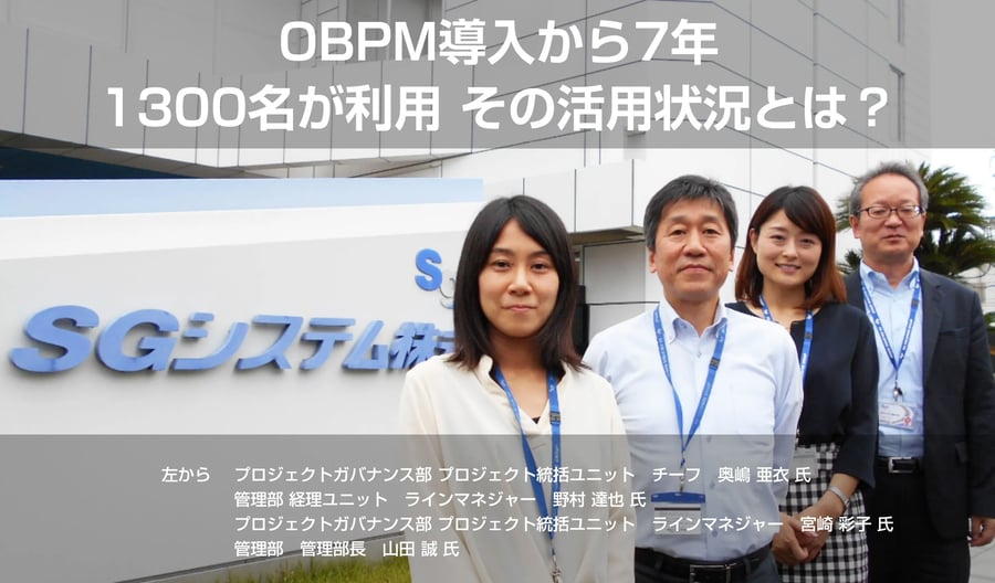 エンタ―プライズ・プロジェクトマネジメント(EPM)実現のためにOBPM導入から7年目となるSGシステム株式会社様に、今の活用状況と次に目指すプロジェクト管理の取り組みについてお伺いしました。