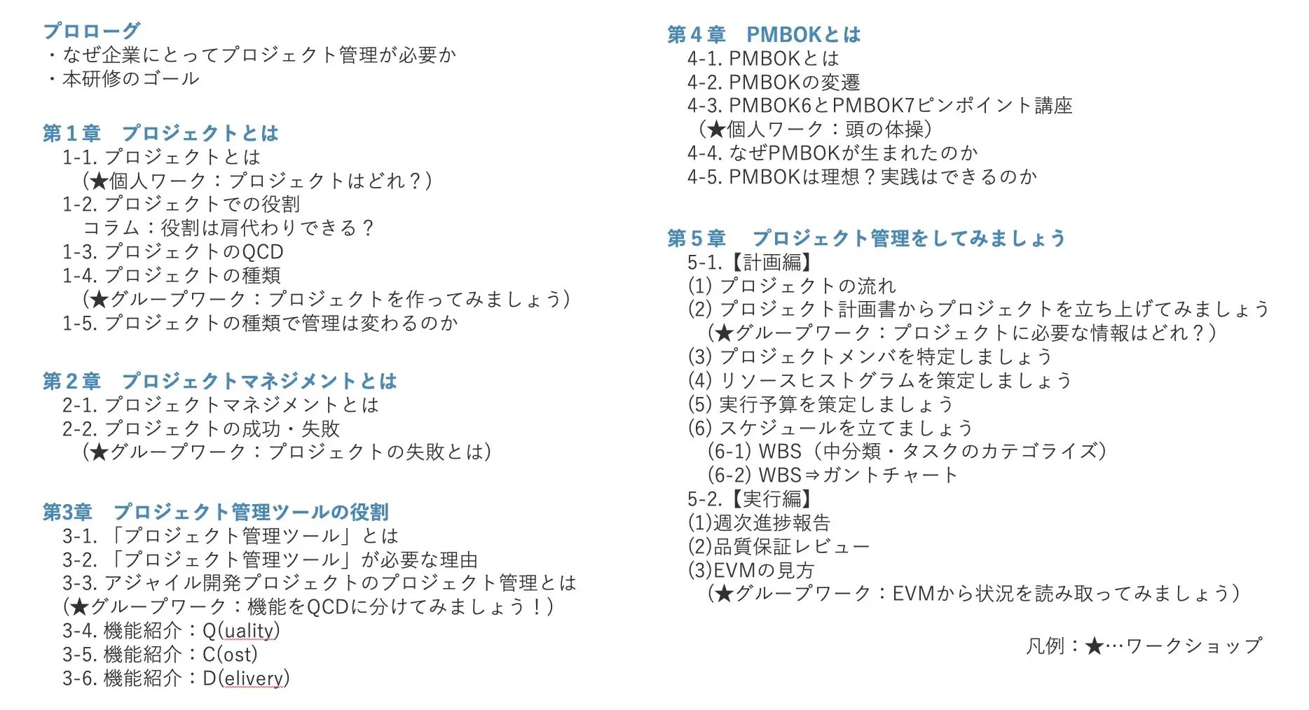 プロジェクト管理研修のコース