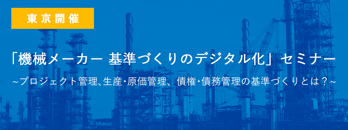 製造業:機械メーカーを取り巻く環境は激しく変わってきています。顧客の生産設備への技術・コスト要求は高まり、個別受注後は製番別の採算管理をしっかり見ていかなければなりません。従来のマネジメントのやり方や、ドンブリ勘定では、顧客の要求通りのQCD(品質・コスト・進捗)の製品は届けられません。また熟練者の定年退職から、技術継承ができず、製造力が低下しているかもしれません。こんな時こそ、計画力向上や作業の標準化などの基準づくりを行い、システム構築を急ぐ必要があります。本セミナーでは様々な観点から、機械メーカーの基準づくりのデジタル化について、わかりやすくお伝えしたいと思います。