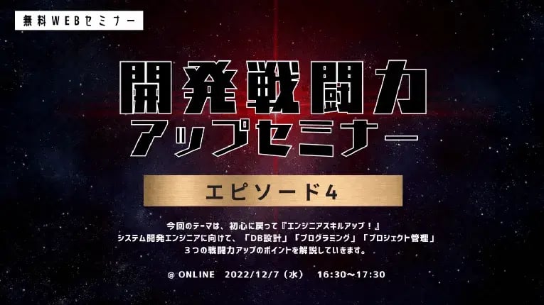 システム開発エンジニアに向けて、「DB設計」「プログラミング」「プロジェクト管理」3つの戦闘力アップのポイントを解説していきます。