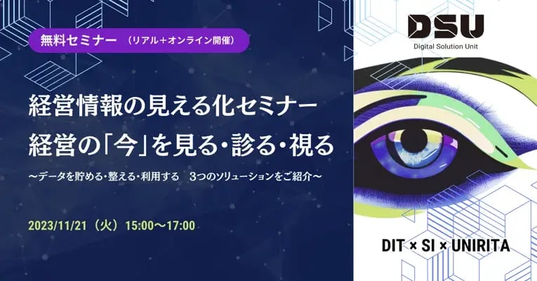 本セミナーでは、意外と知らない経営情報の見える化の極意を解説するとともに、見える化のステップ毎に有用なソリューションをDSUの3社が紹介していきます。