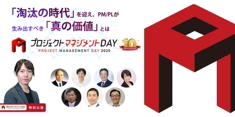「プロジェクトマネジメント」の祭典 昨年は2,000名以上のお申込みをいただいた『プロジェクトマネジメントDAY』 今回で、記念すべき10回目となります。本年もオンラインと会場のハイブリット開催です。今年のテーマは"「淘汰の時代」を迎え、PM/PLが生み出すべき「真の価値」とは"です。 2025年の崖(DX推進、IT人材不足)に立った今、変革していかないと取り残される時代が到来。プロジェクトはQCDの達成よりも「価値の提供」が重要視されています。これからのPM/PLはどんな価値を生み出し、提供していくべきか。このビジネスの急速な変化に対応していくためには、意識改革ならびにスキルと知識のアップデートが必要と考えます。そこで、ビジネスリーダー・PM/PLが、これからの時代に求められる視点や考え方、スキルを、各分野の有識者が解説していきます。