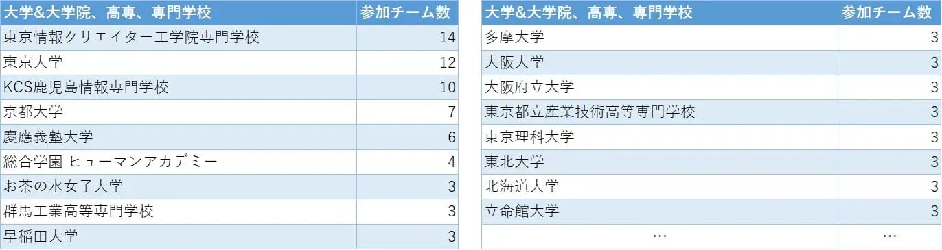 1社あるいは1校から複数のチームの参加が可能です。
